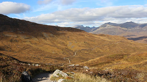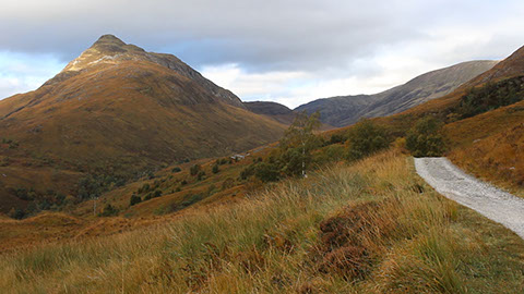 This west-running stretch of the trail travels the glen between Lochaber and The Mamores. It's a constant thread of dramatic Highland scenery. There's a ruined building situated at the approximate midpoint of this section. It's fairly well-known and frequently photographed with its B-list celebrity status likely due to the absence of any other photogenic objects (the general beauty of the Highlands notwithstanding, of course - sometimes the camera yearns for an anthropic subject).