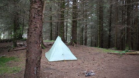 This next caution should be obvious, but I do occasionally hear of ill-prepared campers who do not understand site selection. This section of the West Highland Way follows a forest service road. The forest is thickly wooded and the land is steep and uneven immediately off of the road. For long stretches the only level spots are the road and the passing places. Never set up camp in a passing place! It's a working road - there might only be two cars that pass in the night but if they meet at your passing place then that's the end of your wild-camping adventures.