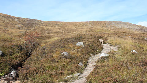 This west-running stretch of the trail travels the glen between Lochaber and The Mamores. It's a constant thread of dramatic Highland scenery. There's a ruined building situated at the approximate midpoint of this section. It's fairly well-known and frequently photographed with its B-list celebrity status likely due to the absence of any other photogenic objects (the general beauty of the Highlands notwithstanding, of course - sometimes the camera yearns for an anthropic subject).